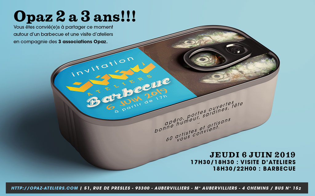 Opaz Ateliers forment un ensemble d’ateliers d’artistes partagés répartis sur 3 entrepôts auto-gérés par 3 associations 1901 fondées sous l’impulsion de Gurvan Mattelart artiste peintre.